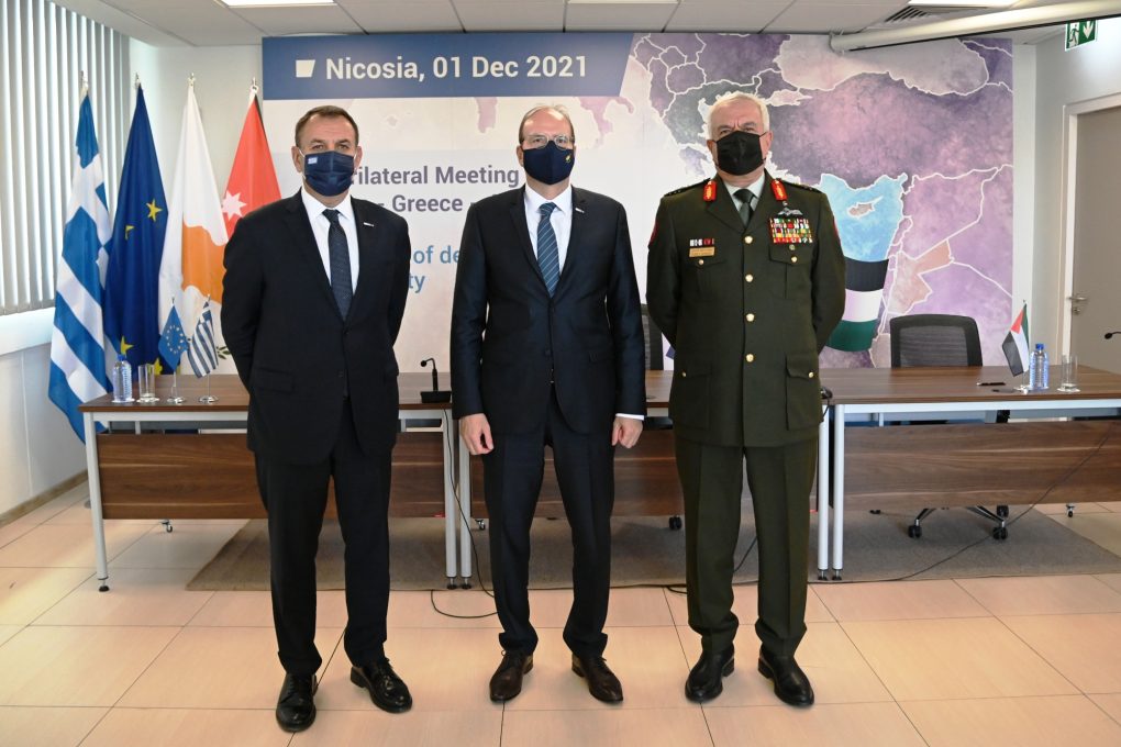 The Minister of National Defence Mr Nikolaos Panagiotopoulos participated today, Wednesday 01 December, in Nicosia, in the 1st Trilateral Meeting of Greece, Cyprus and Jordan, where the Minister of Defence of Cyprus Mr Charalambos Petridis and the Chief of the Armed Forces of Jordan Major General Yousef Ahmed Huneiti also participated. The latest developments in the region were discussed, as well as the progress of the cooperation which has been achieved in the field of defence.