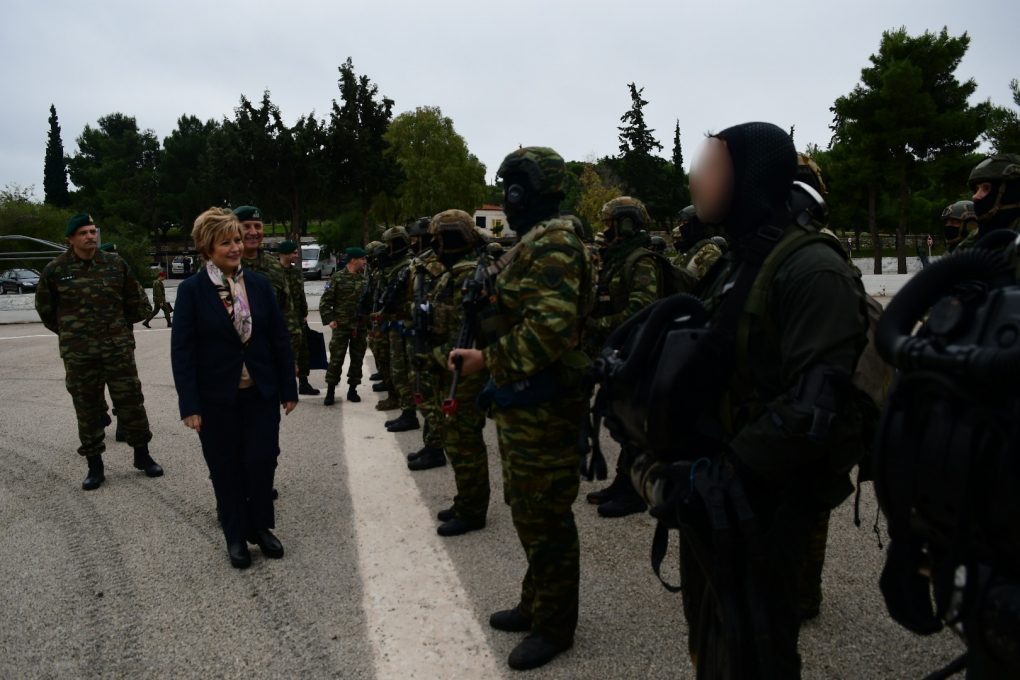 The Deputy Minister of National Defence Maria Kollia-Tsaroucha, accompanied by the Deputy Chief of HNDGS Lieutenant General Konstantinos Floros, visited the Special Forces Training Centre at Megalo Pefko on Friday 14 December 2018.