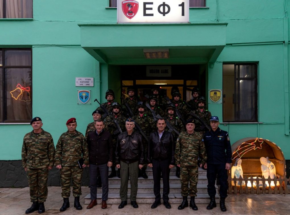 The Minister of National Defence, Mr. Nikolaos Panagiotopoulos, accompanied by the Chief HNDGS – General Christos Christodoulou, the Chief HNGS – Vice Admiral Nikolaos Tsounis and the Chief HAFGS – Lieutenant General Georgios Blioumis, visited -in view of the Christmas season- Units of the Army, the Navy and the Air Force in Skyros, Lemnos and Kastanies – Orestiada, Evros.
