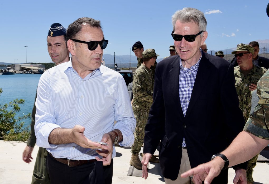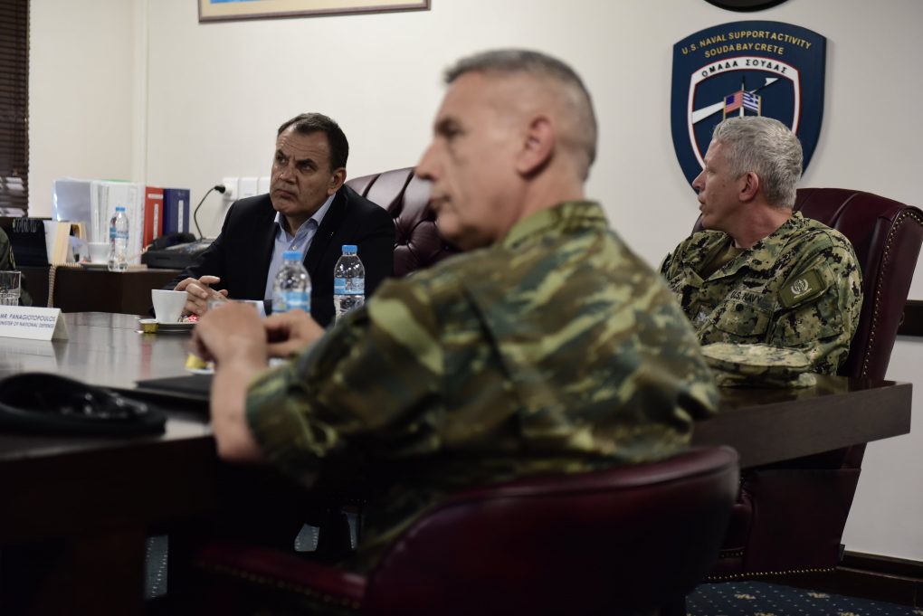 The Minister, together with the Chief HNDGS General Konstantinos Floros, have been informed by the Commander of the US Naval Support Activity Souda Bay about its mission; they inspected logistics and naval operations support infrastructure of the Crete Naval Base, while they boarded US Navy CCVs, in order to identify their capabilities.