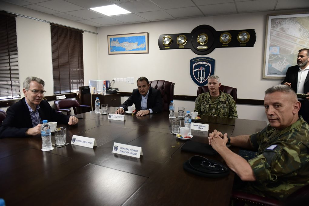 The Minister of National Defence, Mr. Nikolaos Panagiotopoulos, visited today, this 12th day of June of 2020, the facilities of the US Military Base in Souda Bay – Crete, following an invitation by the US Ambassador in Athens, Mr. Goeffrey R. Pyatt.