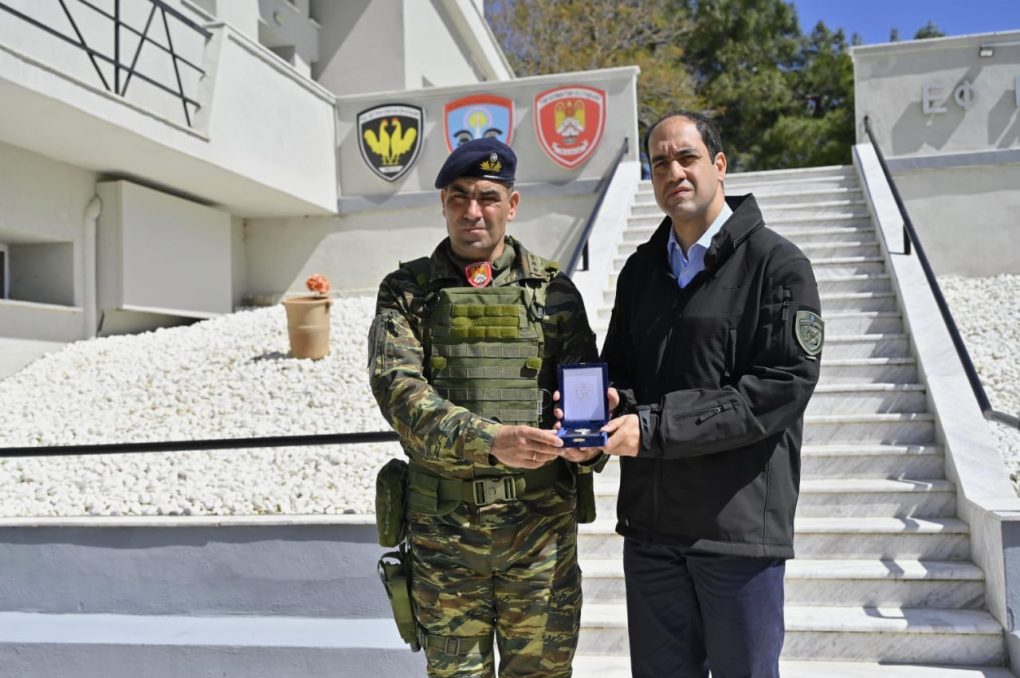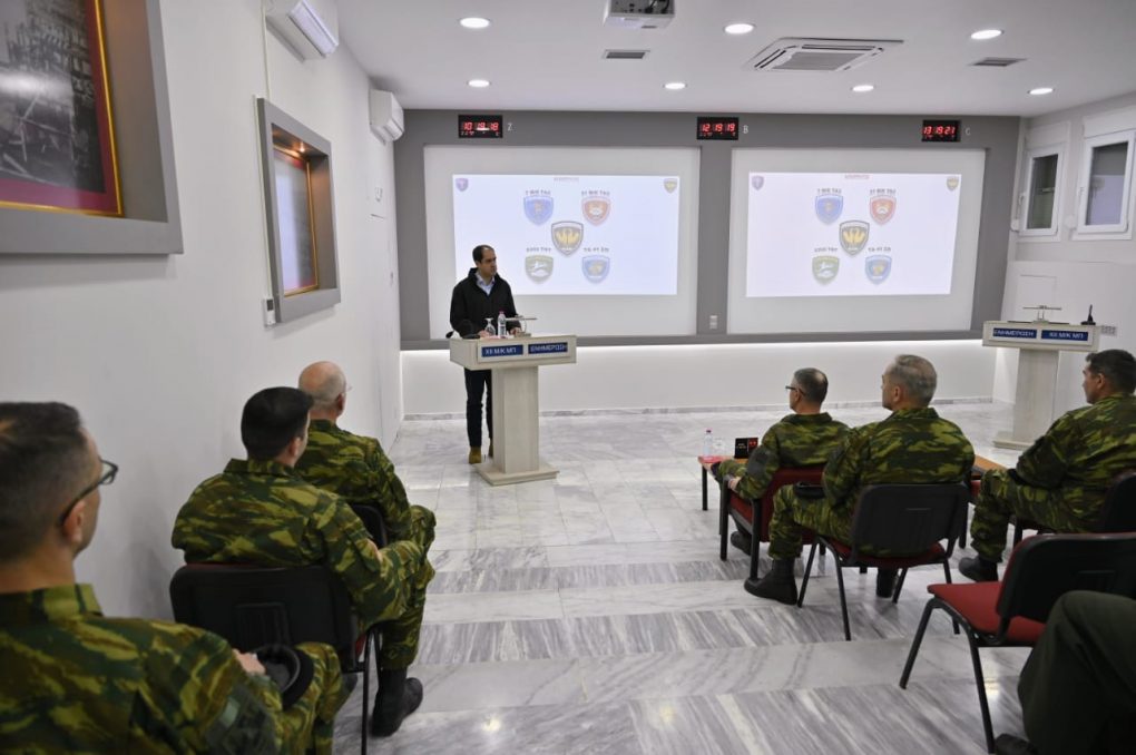 Mr Kefalogiannis had a meeting with members of the Division’s National Guard Battalions and talked with them. He stressed that the National Guard constitutes the connecting bond between the Armed Forces and the local society and – composed of locals – the best example of “battle for hearth and home”. At the same time, he stressed that for the Ministry of National Defence, the National Guard constitutes a force multiplier and for that reason one of the main goals is the institution’s upgrade, with the objective of improving training and enhancing the operational capabilities of the National Guard Units. An actual proof of the Ministry’s intentions is the recent passage of a new bill for the rationalisation of the recruiting clauses and the upgrade of the institution, in order to render it more effective.