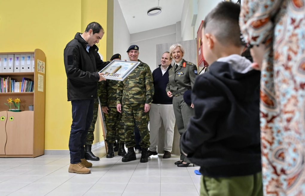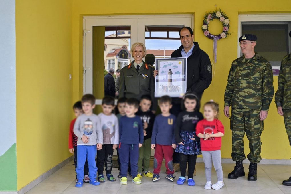 He then went to the Holy Church of Saint Georgios in the premises of “PATSOUKA” Camp, to the 216 Mobile Field Surgical Hospital, where he was briefed on the structure, the staffing and the operation of the Hospital and to the Alexandroupoli Army Daycare, where he received, with great pleasure, the present of the preschoolers accommodated there, while in each case he was received by the Commander of the 216 Mobile Field Surgical Hospital Colonel (Med/Doc) Thomas Michos and the Director of the Alexandroupoli Army Daycare Major (Med/Nurse) Brigadier General Stella Kapetanidou.
