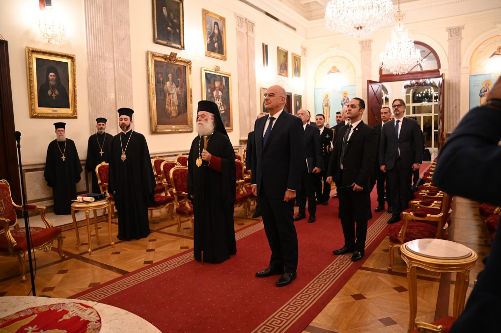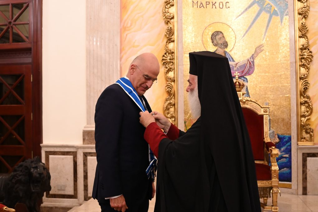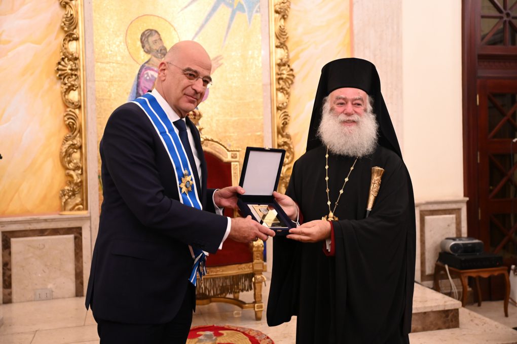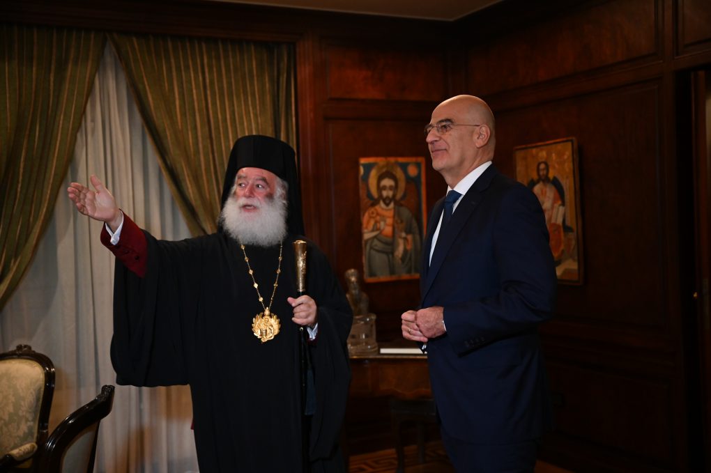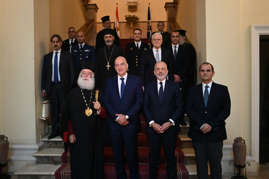 The Minister of National Defence Nikos Dendias visited yesterday, Tuesday 19 December 2023, in the context of his official visit to Egypt, Alexandria, where he was received by His Beatitude the Pope and Patriarch of Alexandria and All Africa Mr Theodoros B in the Patriarchate.