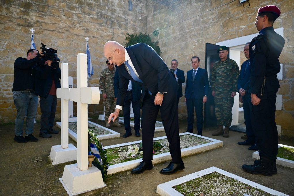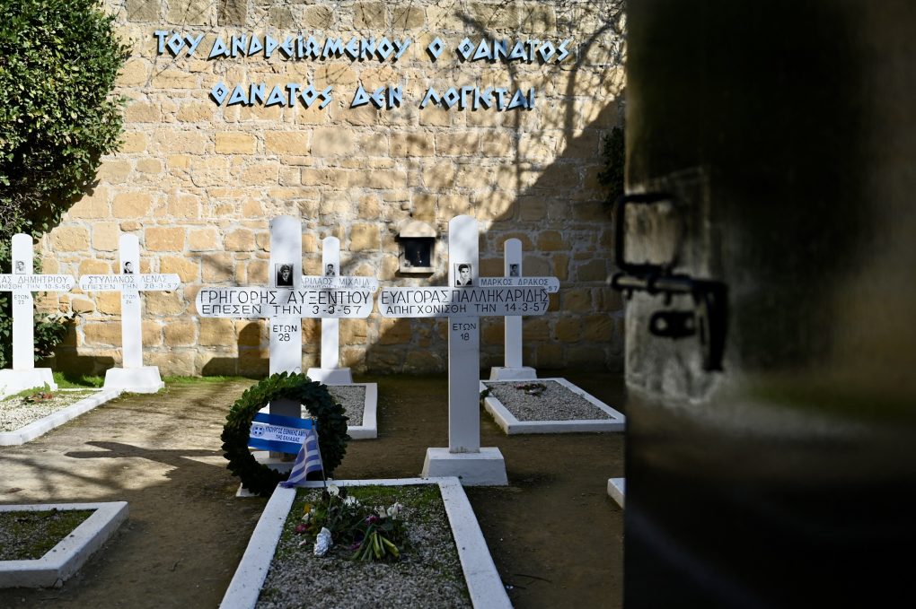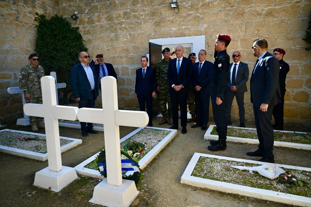 Then he went to the Filakismena Mnimata (Imprisoned Graves), in Nicosia, where he laid a wreath on the grave of Grigoris Afxentiou, on the day marking 69 years since his sacrifice.