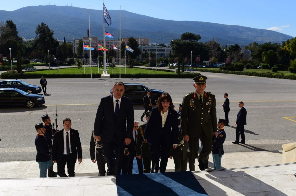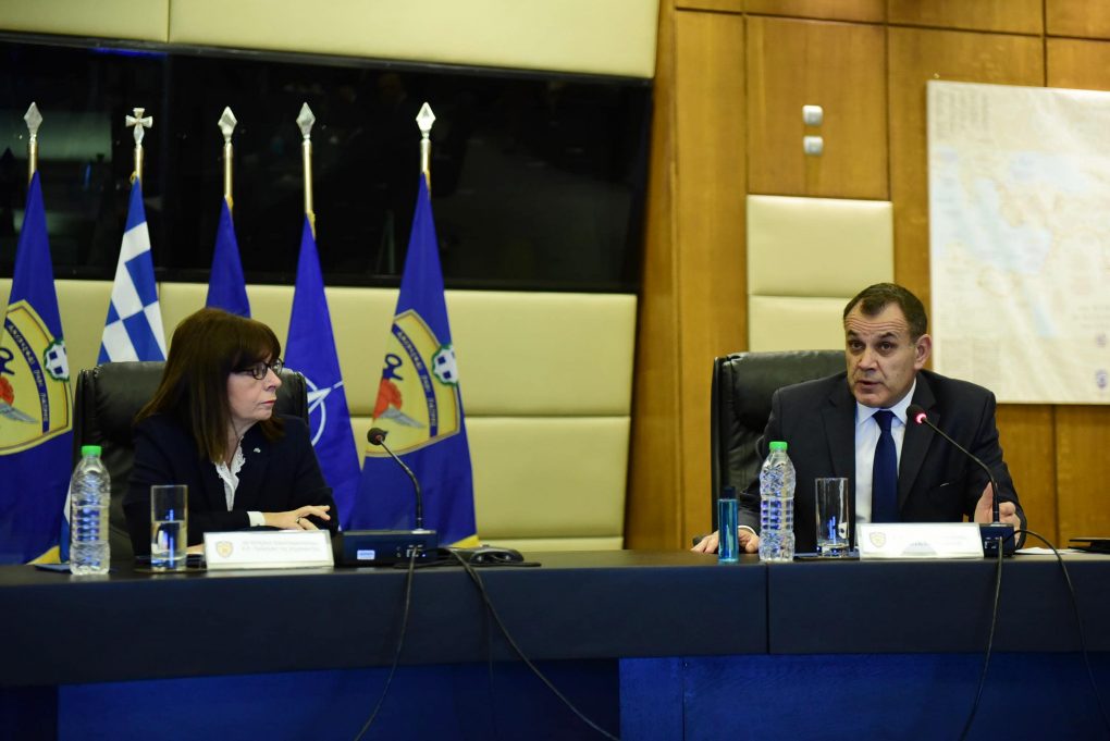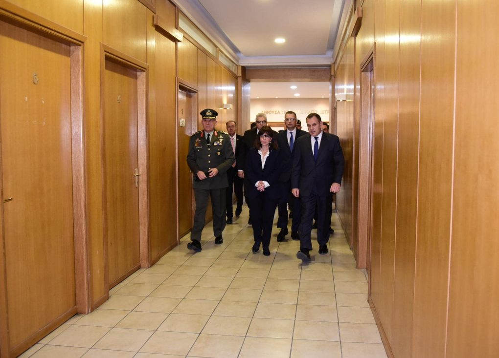 The President of the Hellenic Republic Katerina Sakellaropoulou visited the Ministry of National Defence, on Tuesday 17 March 2020, and was briefed on all current issues by the political and military leadership.