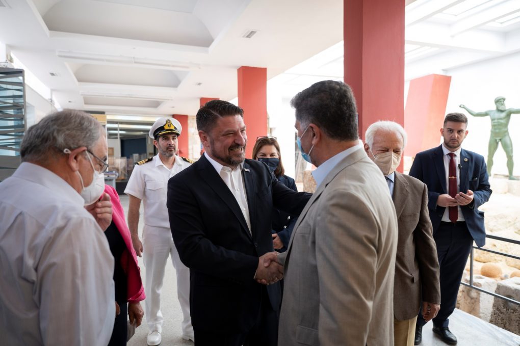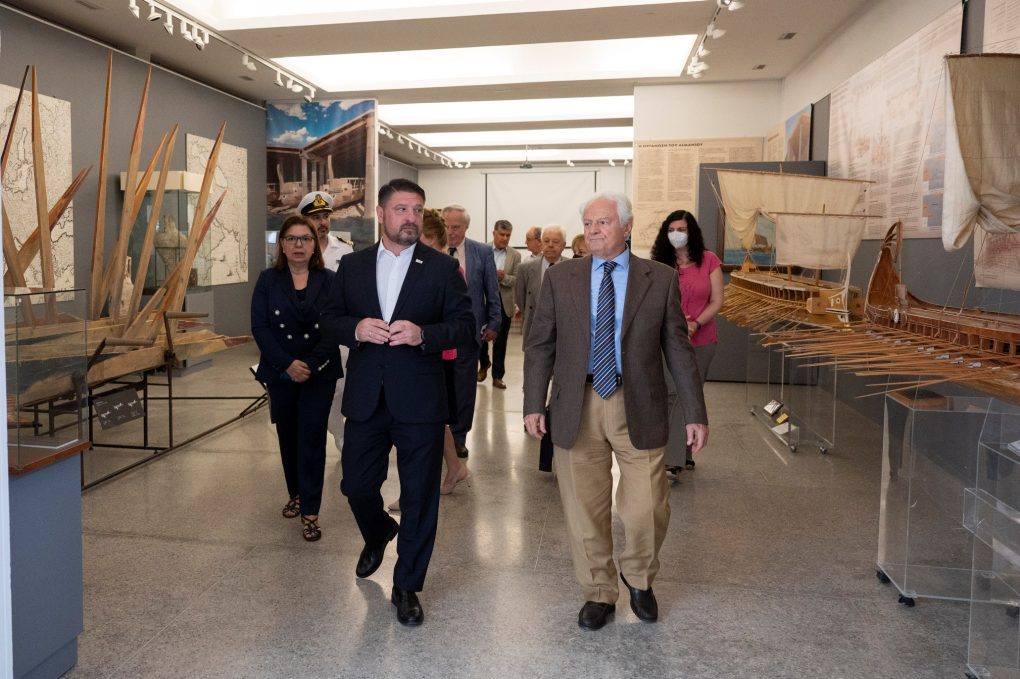Initially, the Deputy Minister of National Defence went to the Hellenic Maritime Museum, where he was received by the President of the Board of Directors Ms Anastasia Anagnostopoulou – Paloubis and the Vice President B΄ Honorary Chief of HNGS Admiral (retired) Nikolaos Tsounis.