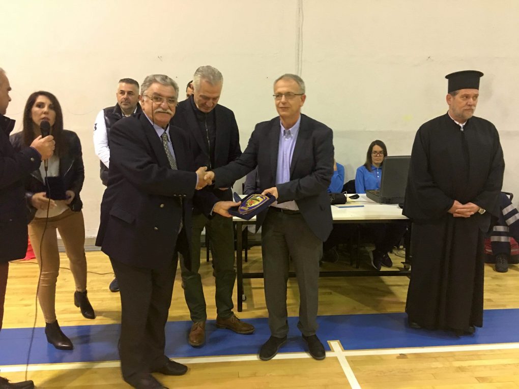 On Friday, 22 February 2019, the Alternate Minister of National Defence Panagiotis Rigas attended a women’s basket-ball game, between AEK Peristeriou team and the Armed Forces National Team, at Anthoupoli sports hall. The National Team won, with a 26-39 score. The game was conducted for charity reasons, for the collection of food and clothes, to be distributed to the families supported by the Aghia Anna Church, in Peristeri. The Alternate Minster of National Defence awarded commemorative presents to A. Pahatouridis, the mayor of Peristeri, N. Thanopoulos, the team’s president and Father Antonios. The mayor of Peristeri awarded a commemorative present to the Alternate Minister of National Defence and awarded a prize to the captain of the Armed Forces National Team.