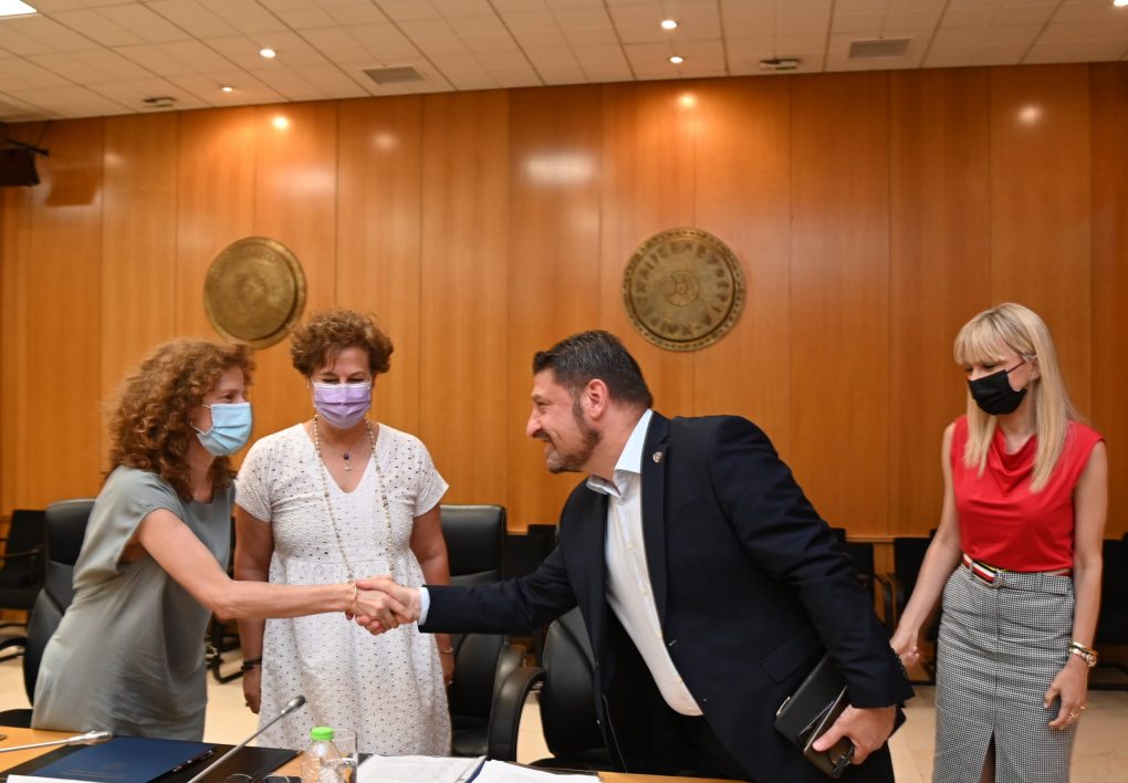 Ο Υφυπουργός Εθνικής Άμυνας κ. Νικόλαος Χαρδαλιάς, πραγματοποίησε σήμερα, Δευτέρα 4 Ιουλίου 2022, στο Υπουργείο Εθνικής Άμυνας (ΥΠΕΘΑ), συνάντηση εργασίας με την Πρόεδρο του Εθνικού Κέντρου Δημόσιας Διοίκησης και Αυτοδιοίκησης (Ε.Κ.Δ.Δ.Α.) Δρ. Παρασκευή Δραμαλιώτη.