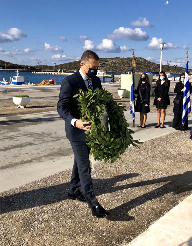 Παρέστη στη Δοξολογία και κατέθεσε στεφάνι στο Ηρώο της Νίκης, στους Λειψούς, όπου συναντήθηκε με τον Δήμαρχο κ. Φώτη Μάγγο και αντάλλαξε ευχές με κατοίκους και Εθνοφύλακες.