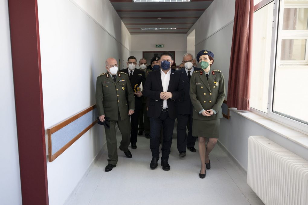 Τον κ. Χαρδαλιά συνόδευσαν ο Διοικητής της Ανώτατης Στρατιωτικής Διοίκησης Υποστήριξης Στρατού Αντιστράτηγος Γεώργιος Κωστίδης, ο Διευθυντής της Διεύθυνσης Υγειονομικού ΓΕΕΘΑ Υποπτέραρχος (ΥΙ) Δημήτριος Χατζηγεωργίου και ο Διευθυντής της Διεύθυνσης Υγειονομικού ΓΕΣ Υποστράτηγος Αντώνιος Ζουμπουλίδης.