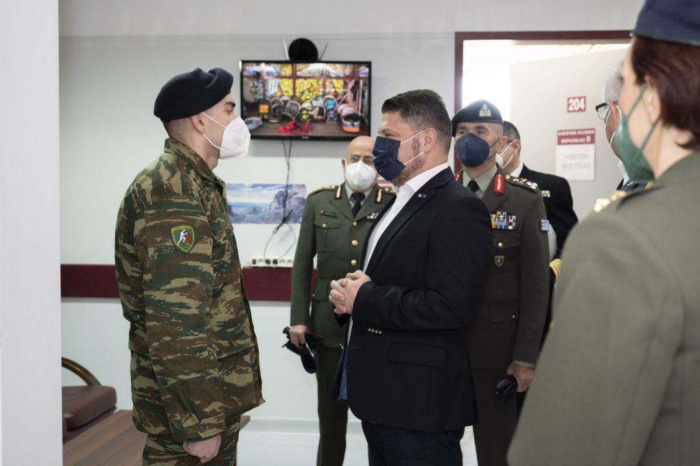 Κατά την επίσκεψή του στο Διακλαδικό Κέντρο Φυσικής Ιατρικής και Αποκατάστασης του 414 ΣΝΕΝ, ο Υφυπουργός Εθνικής Άμυνας ενημερώθηκε από τη Διευθύντρια, Αντισυνταγματάρχη (ΥΙ) Ελένη Μουμτζή, για τη λειτουργία του Κέντρου, ενώ παράλληλα παρακολούθησε επικοινωνία μέσω διαδικτυακής βιντεοκλήσης με ασθενή, στον οποίο πραγματοποιήθηκε καρδιοαναπνευστική φυσικοθεραπεία, μετά τη νόσησή του από COVID-19.
