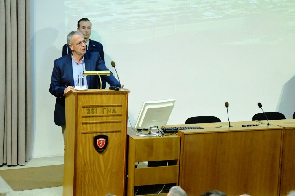 Στον χαιρετισμό που απηύθυνε, τόνισε ότι η «υγειονομική πολιτική του Υπουργείου Εθνικής Άμυνας έχει ως πρωταρχικό στόχο της την προστασία και την προαγωγή της υγείας και αποσκοπεί στην παροχή υψηλού επιπέδου υπηρεσιών υγείας, τόσο στο προσωπικό των Ενόπλων Δυνάμεων, όσο και στο ευρύτερο κοινωνικό σύνολο».