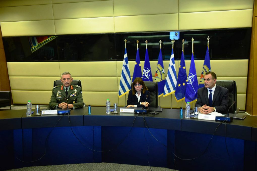 Το Υπουργείο Εθνικής Αμύνης επισκέφθηκε σήμερα, Τρίτη 17 Μαρτίου 2020, η Πρόεδρος της Δημοκρατίας Κατερίνα Σακελλαροπούλου, η οποία ενημερώθηκε για όλα τα τρέχοντα ζητήματα από την πολιτική και τη στρατιωτική ηγεσία.