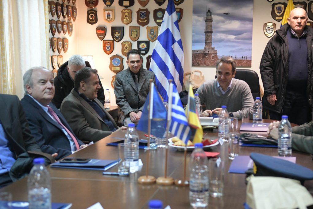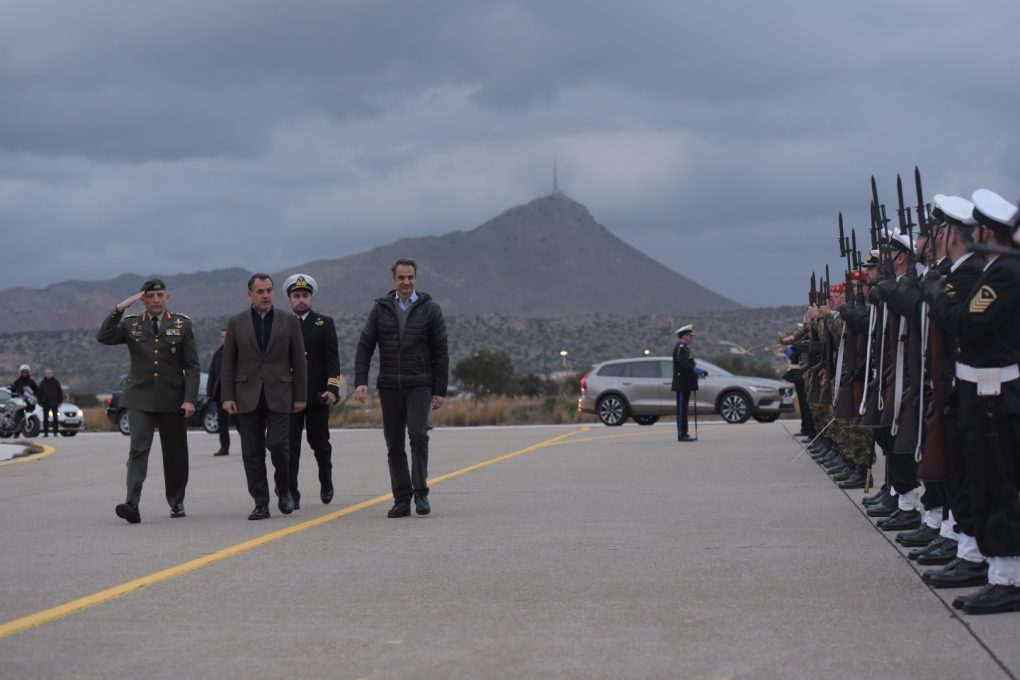 Ο Υπουργός Εθνικής Άμυνας κ. Νικόλαος Παναγιωτόπουλος συνόδευσε τον Πρωθυπουργό κ. Κυριάκο Μητσοτάκη κατά την επίσκεψη που έκανε στην 115 Πτέρυγα Μάχης της Πολεμικής Αεροπορίας, στο Ακρωτήρι Σούδας, όπου ενημερώθηκαν για την πρότυπη εγκατάσταση “Net Zero Energy” που υλοποιείται σύμφωνα με την πολιτική του ΝΑΤΟ για την «Πράσινη Άμυνα».