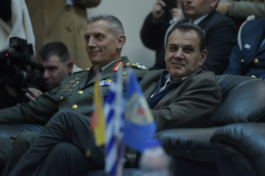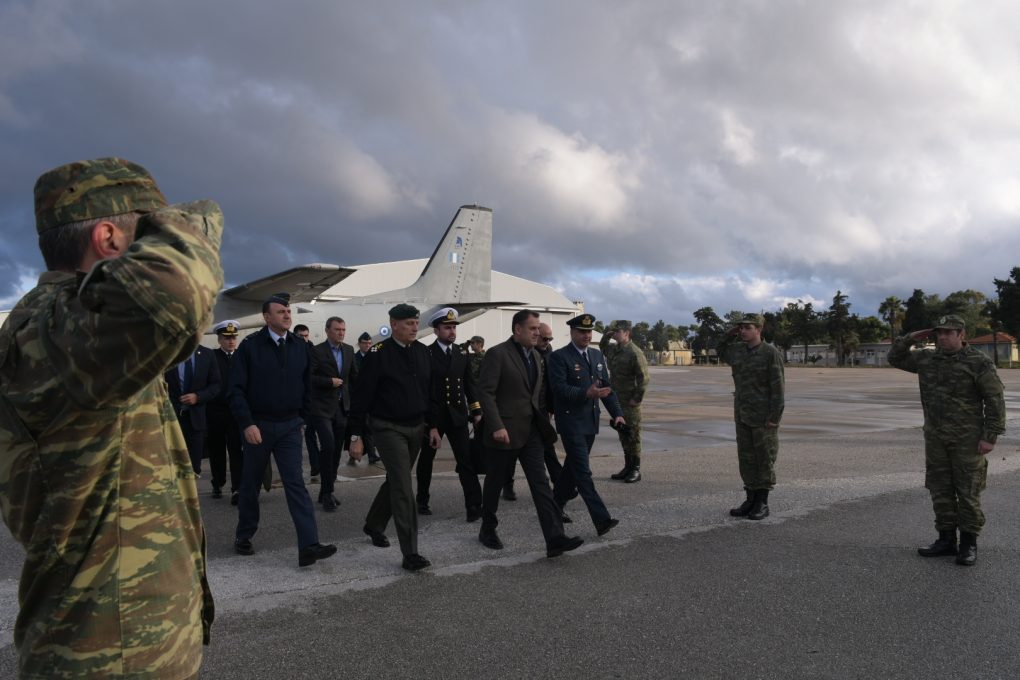 Τον Υπουργό Εθνικής Άμυνας συνόδευαν ο Αρχηγός ΓΕΕΘΑ Στρατηγός Κωνσταντίνος Φλώρος και ο Αρχηγός ΓΕΑ Αντιπτέραρχος (Ι) Γεώργιος Μπλιούμης.