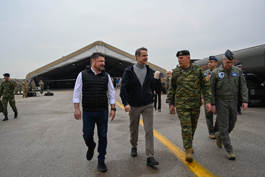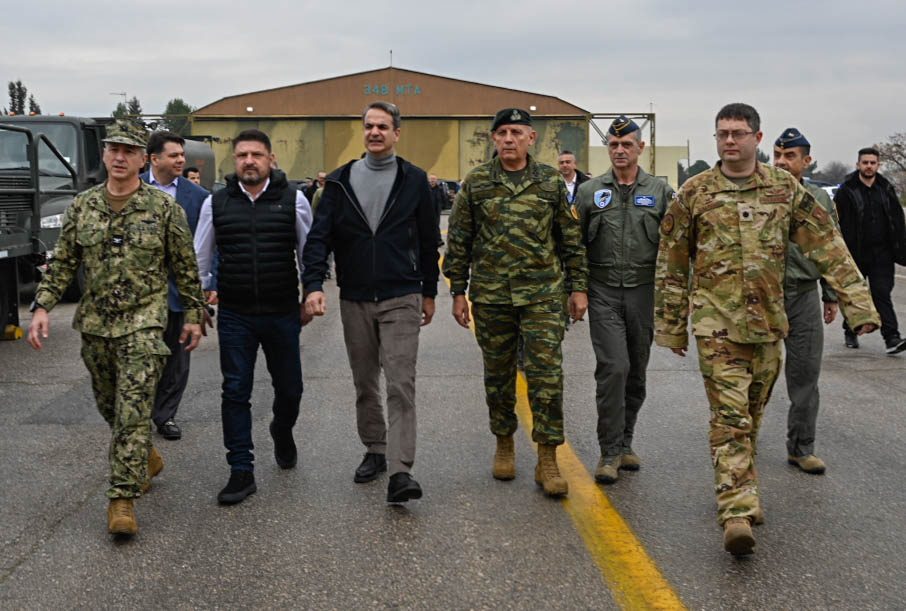 Ο Πρωθυπουργός κ. Κυριάκος Μητσοτάκης, επισκέφθηκε σήμερα, Παρασκευή 24 Φεβρουαρίου 2023, την 110 Πτέρυγα Μάχης (ΠΜ) στην Αεροπορική Βάση Λάρισας, συνοδευόμενος από τον Υφυπουργό Εθνικής Άμυνας κ. Νικόλαο Χαρδαλιά και τον Αρχηγό ΓΕΕΘΑ Στρατηγό Κωνσταντίνο Φλώρο. Παρόντες ήταν επίσης ο Αρχηγός Τακτικής Αεροπορίας Αντιπτέραρχος (Ι) Γεώργιος Φασούλας και ο Πρέσβης των ΗΠΑ στην Αθήνα κ. George Tsunis.