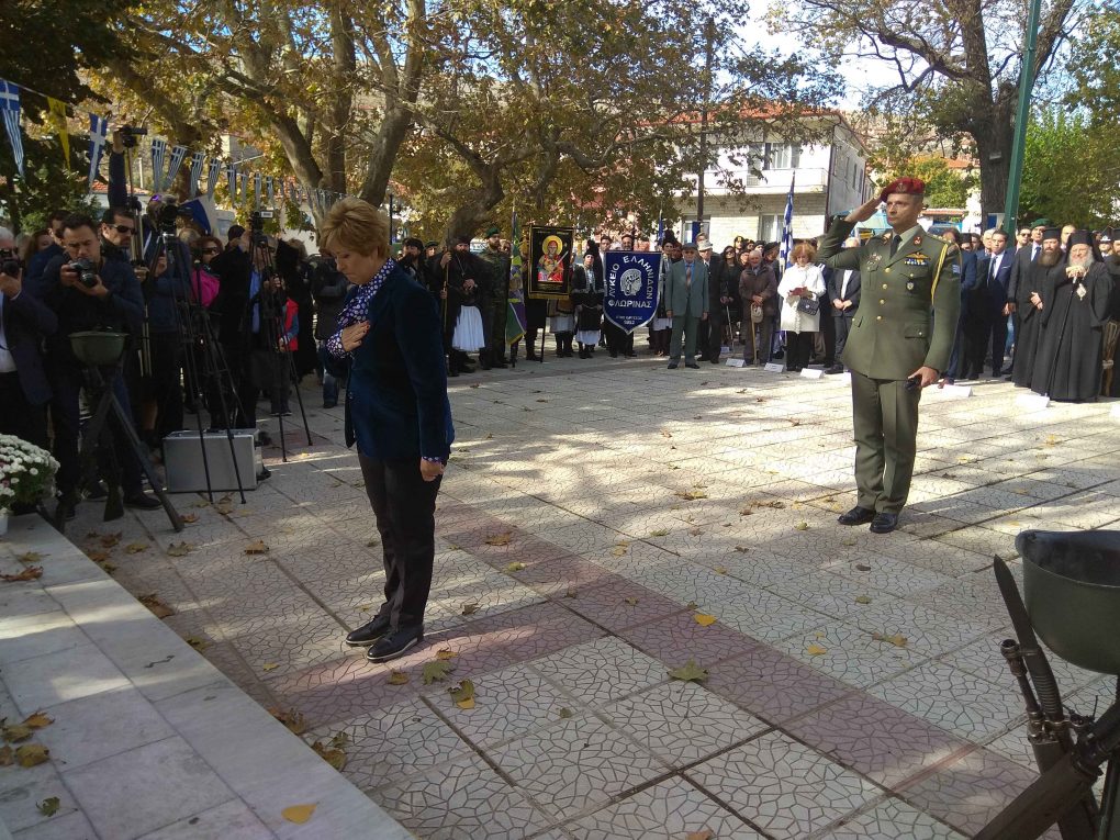 Στη συνέχεια η ΥΦΕΘΑ Μαρία Κόλλια-Τσαρουχά επισκέφθηκε την Καστοριά και κατόπιν το χωριό Κέλλη, στον Νομό Φλωρίνης. Εκεί, παρουσία του Σεβασμιώτατου Μητροπολίτη Φλωρίνης, Πρεσπών και Εορδαίας, Υπέρτιμου και Έξαρχου Άνω Μακεδονίας κ.κ. Θεόκλητο, η ΥΦΕΘΑ παρακολούθησε την Δοξολογία. Ακολούθησε κατάθεση στεφάνων και ομιλία της, στις εκδηλώσεις του ιστορικού χωριού. Στη συνέχεια, παρακολούθησε την άσκηση των Εθνοφυλάκων.