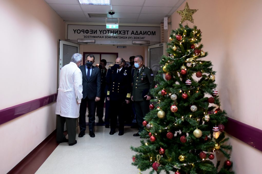 Ο Υπουργός Εθνικής Αμύνης κ. Νικόλαος Παναγιωτόπουλος επισκέφθηκε το 401 Γενικό Στρατιωτικό Νοσοκομείο Αθηνών (401 ΓΣΝΑ), το 251 Γενικό Νοσοκομείο Αεροπορίας (251 ΓΝΑ), και το Ναυτικό Νοσοκομείο Αθηνών (ΝΝΑ), σήμερα Πέμπτη 23 Δεκεμβρίου 2021,προκειμένου να ανταλλάξει ευχές με το προσωπικό, τους νοσηλευόμενους και τους οικείους τους ενόψει των εορτών των Χριστουγέννων.