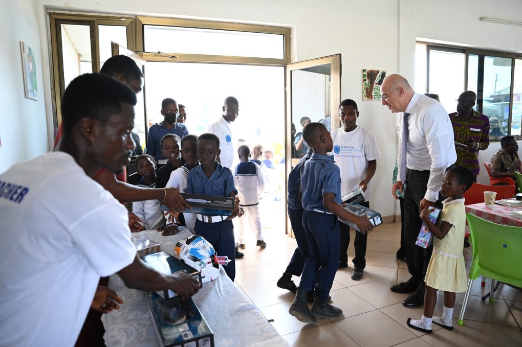 Ο Υπουργός Εθνικής Άμυνας, Νίκος Δένδιας, επισκέφθηκε σήμερα, Τρίτη 5 Δεκεμβρίου 2023, το Ελληνικό Σχολείο του Αγίου Νικολάου, στην Τέμα, με την αφορμή της επίσκεψής του στην Γκάνα, όπου συμμετέχει στην Υπουργική Σύνοδο του ΟΗΕ για την Υποστήριξη των Επιχειρήσεων Ειρήνης.