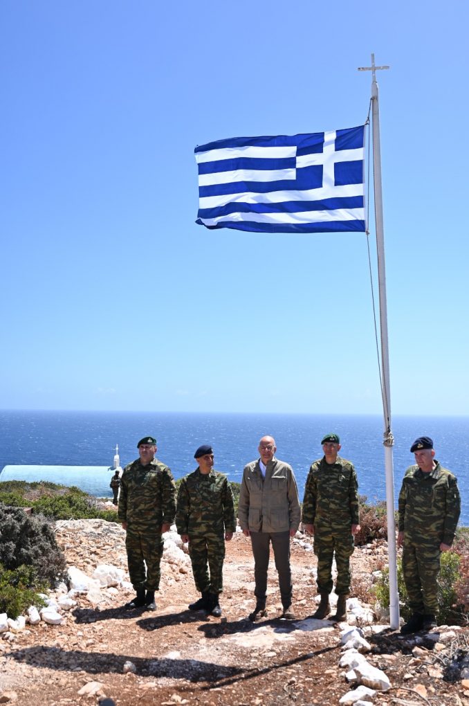 Ο Υπουργός Εθνικής Άμυνας, Νίκος Δένδιας, επισκέφθηκε σήμερα, Μεγάλο Σάββατο 4 Μαΐου 2024, Επιτηρητικά Φυλάκια της περιοχής ευθύνης της 95 ΑΔΤΕ, στο νησιωτικό σύμπλεγμα Μεγίστης, συνοδευόμενος από τον Αρχηγό ΓΕΕΘΑ Στρατηγό Δημήτριο Χούπη, τον Διοικητή της ΑΣΔΕΝ Αντιστράτηγο Εμμανουήλ Θεοδώρου και τον Διοικητή της 95 ΑΔΤΕ Υποστράτηγο Εμμανουήλ Χατζή.