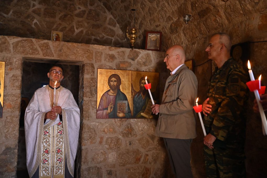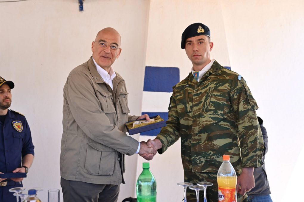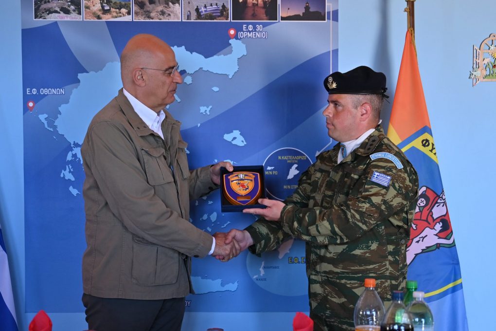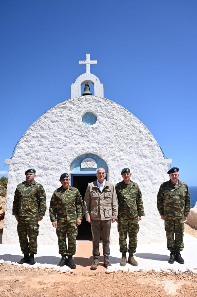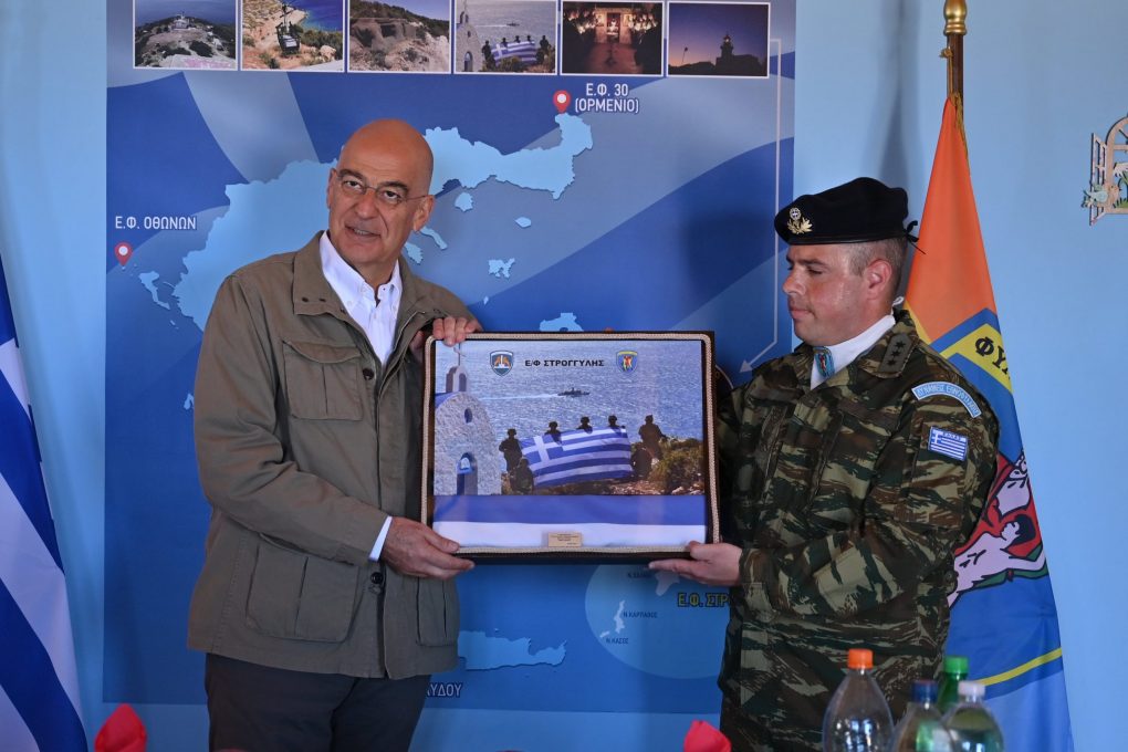 Στη συνέχεια, ο κ. Δένδιας μετέβη στο Επιτηρητικό Φυλάκιο της Ρω, όπου ευχήθηκε επίσης στα στελέχη και τους οπλίτες που υπηρετούν σε αυτό.