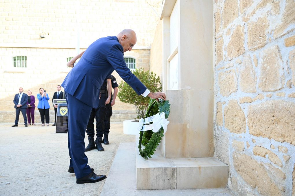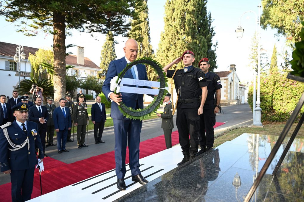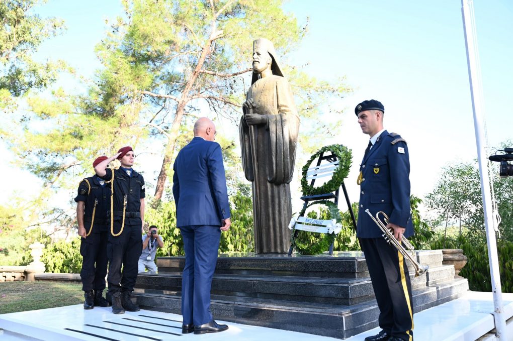 Ο κ. Δένδιας μετέβη κατ’ αρχάς στο Προεδρικό Μέγαρο, στη Λευκωσία, όπου κατέθεσε στέφανο στον ανδριάντα του Αρχιεπισκόπου Μακαρίου Γ’.