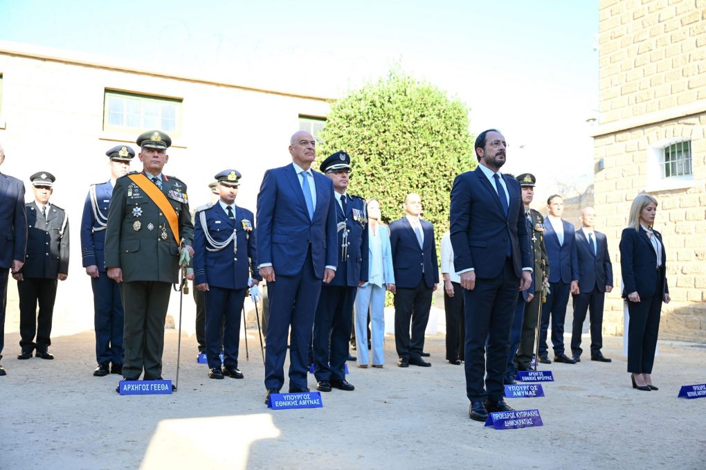 Ο Υπουργός Εθνικής Άμυνας, Νίκος Δένδιας, συνοδευόμενος από τον Αρχηγό ΓΕΕΘΑ Στρατηγό Κωνσταντίνο Φλώρο, επισκέφθηκε σήμερα, Κυριακή 1η Οκτωβρίου, την Κύπρο, εκπροσωπώντας τον Πρωθυπουργό Κυριάκο Μητσοτάκη και την Κυβέρνηση της Ελληνικής Δημοκρατίας, στις εκδηλώσεις της 63ης επετείου από την ανακήρυξη της Ανεξαρτησίας της Κυπριακής Δημοκρατίας.