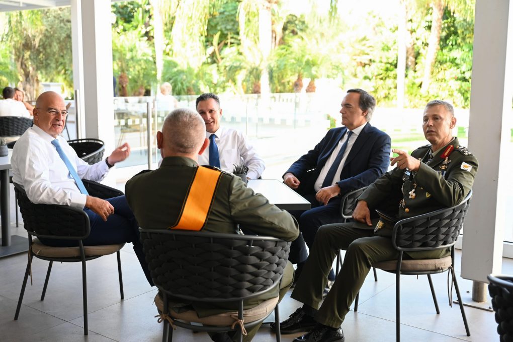 Ακολούθως ο κ. Δένδιας συναντήθηκε με τον Υπουργό Άμυνας της Κύπρου κ. Μιχάλη Γεωργάλλα, με τον οποίο συζήτησαν για την περαιτέρω ενίσχυση της διμερούς συνεργασίας Ελλάδας – Κύπρου καθώς και για περιφερειακά και διεθνή θέματα κοινού ενδιαφέροντος, παρουσία του Αρχηγού ΓΕΕΘΑ Στρατηγού Κωνσταντίνου Φλώρου, του πρέσβη της Ελλάδας κ. Ιωάννη Παπαμελετίου και του Αρχηγού ΓΕΕΦ Αντιστράτηγου Γεώργιου Τσιτσικώστα.