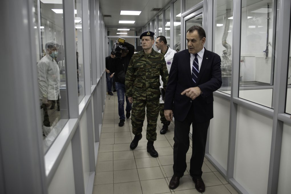 Ο Υπουργός ενημερώθηκε αναλυτικώς για τις παραγωγικές δυνατότητες και τις ανάγκες παραγωγής και προώθησης που έχουν καλύψει τα Στρατιωτικό Εργοστάσια τόσο για τις Ένοπλες Δυνάμεις, όσο και για το Εθνικό Σύστημα Υγείας στο πλαίσιο αντιμετωπίσεως του στελέχους κορωνοϊού “Covid-19”.