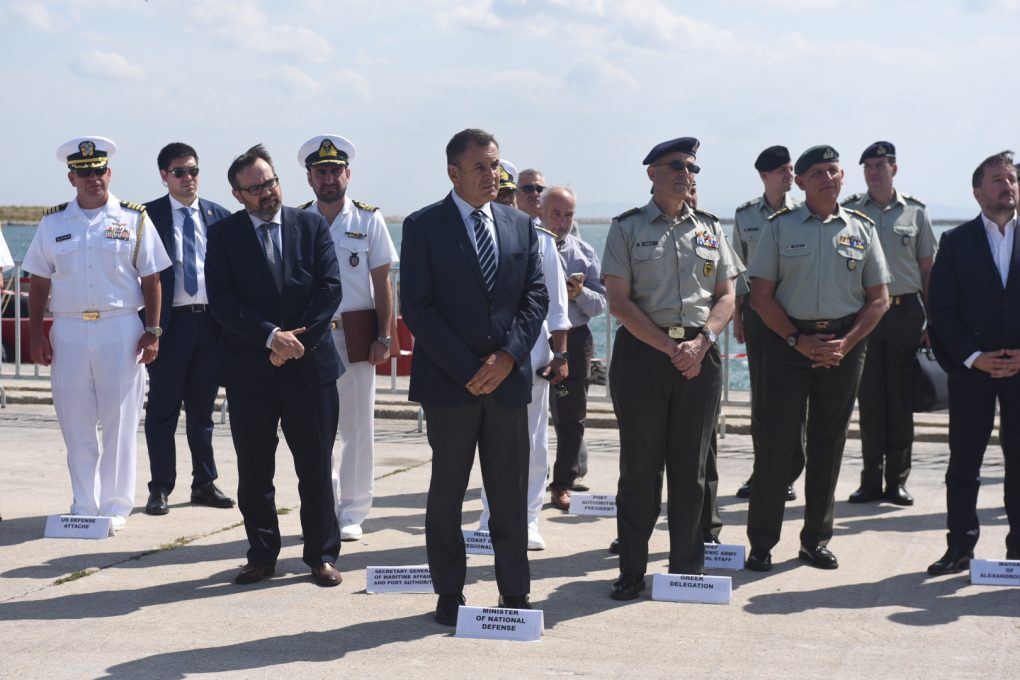 Ο Υπουργός Εθνικής Άμυνας κ. Νικόλαος Παναγιωτόπουλος και ο Πρέσβης των Ηνωμένων Πολιτειών Αμερικής κ. Τζέφρυ Ρ. Πάιατ (Goeffrey R. Pyatt) παρευρέθηκαν σε εκδήλωση που πραγματοποιήθηκε με αφορμή τις εργασίες ανελκύσεως του ναυαγίου της βυθοκόρου «ΟΛΓΑ» στο Λιμένα Αλεξανδρούπολης.