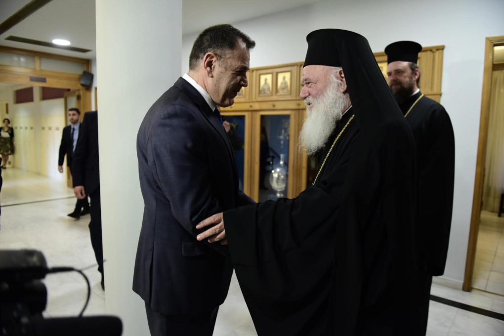 Ο Υπουργός Εθνικής Αμύνης κ. Νικόλαος Παναγιωτόπουλος επισκέφθηκε σήμερα, Τρίτη 2 Ιουνίου 2020, τη Μονή Πετράκη και τα γραφεία της Διαρκούς Ιεράς Συνόδου όπου συνάντησε τον Μακαριότατο Αρχιεπίσκοπο Αθηνών και πάσης Ελλάδας κ. Ιερώνυμο Β’. Κατά τη διάρκεια της προγραμματισμένης συναντήσεως, ο Υπουργός Εθνικής Αμύνης παρέλαβε ειδικό εξοπλισμός προς χρήση από τις Ένοπλες Δυνάμεις, ως δωρεά της Εκκλησίας της Ελλάδος,