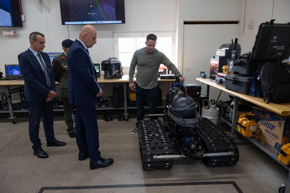 Στη συνέχεια, ο κ. Δένδιας ξεναγήθηκε στις εγκαταστάσεις του NIWC Pacific όπου είχε την ευκαιρία να δει από κοντά τα μη επανδρωμένα αυτόνομα συστήματα και να συνομιλήσει με τους υπεύθυνους των προγραμμάτων για τις δυνατότητές τους. Επίσης, πραγματοποιήθηκε παρουσίαση για το έργο Έρευνας και Ανάπτυξης (R&D) ρομποτικών και άλλων πρωτότυπων εφαρμογών που χρησιμοποιούνται από Μη Επανδρωμένα Συστήματα του Ναυτικού των ΗΠΑ, τα οποία αποτελούν έναν από τους βασικούς πυλώνες πειραματισμού και ανάπτυξης μη επανδρωμένων θαλάσσιων συστημάτων.