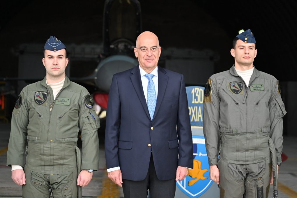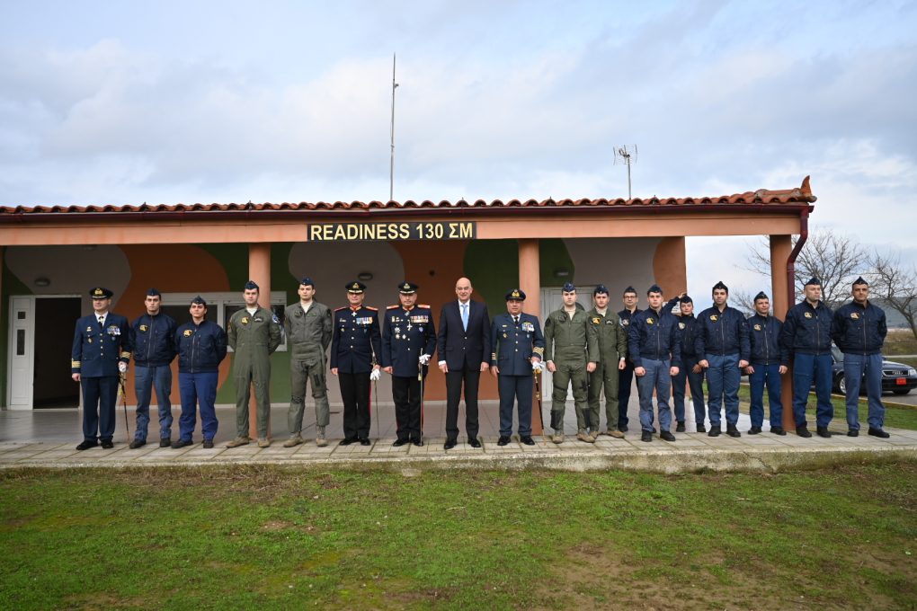 Πρώτος σταθμός του Υπουργού ήταν η 130 Σμηναρχία Μάχης (130 ΣΜ), όπου αντάλλαξε ευχές με τον Διοικητή Σμήναρχο (Ι) Θωμά Παπαδημητρίου, τα πληρώματα και τους τεχνικούς των Αεροσκαφών Επιφυλακής (“Readiness”) F-16, όπως και με το πλήρωμα Επιφυλακής του Ελικοπτέρου SUPER PUMA που εκτελεί αποστολές Έρευνας – Διάσωσης (SAR).