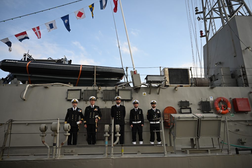 Ακολούθως ο Υπουργός Εθνικής Άμυνας μετέβη στην Κανονιοφόρο του Πολεμικού Ναυτικού «ΠΟΛΕΜΙΣΤΗΣ» που ναυλοχεί στο λιμάνι της Μύρινας, όπου αντάλλαξε επίσης ευχές με τον Διοικητή του Ναυτικού Σταθμού Λήμνου Πλοίαρχο Βασίλειο Παππά ΠΝ, τον Κυβερνήτη της Κανονιοφόρου Πλωτάρχη Ραδάμανθυ Βοσκάκη ΠΝ και τα μέλη του πληρώματος.