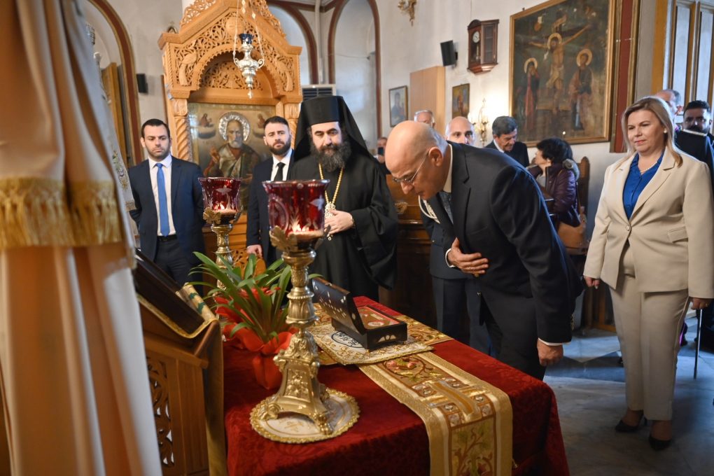 O κ. Δένδιας στην συνέχεια παρέστη στην Δοξολογία για την έλευση του νέου έτους στον Καθεδρικό Ιερό Ναό Αγίας Τριάδος της Μύρινας, χοροστατούντος του Σεβασμιωτάτου Μητροπολίτου Λήμνου και Αγίου Ευστρατίου κ.κ. Ιερόθεου Γ´.