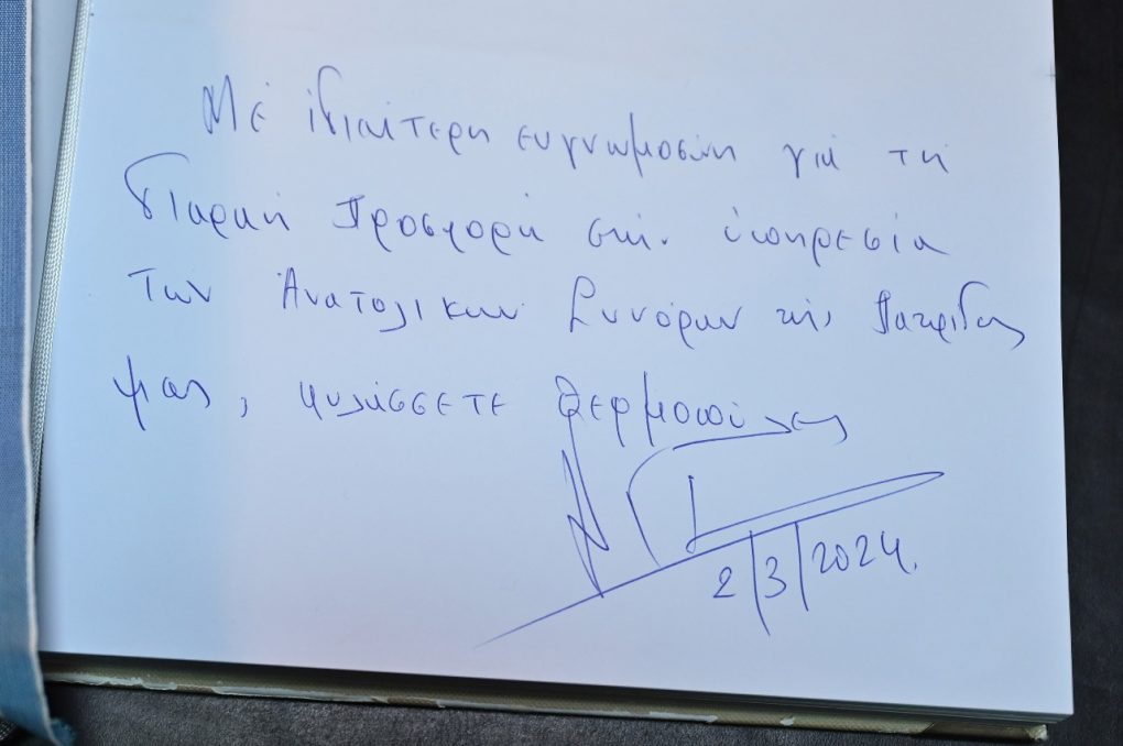 Σας ευχαριστώ πάρα πολύ για την ευκαιρία να συναντηθούμε σήμερα. Είναι για εμένα μεγάλη χαρά και μεγάλη τιμή».