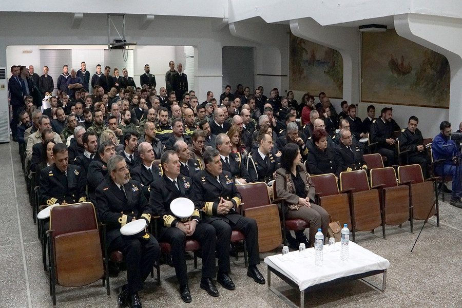 «Είναι ιδιαίτερη χαρά και τιμή να βρίσκομαι σήμερα εδώ, στο Ναύσταθμο Σαλαμίνας. Δεν πρόκειται για μία εθιμοτυπική επίσκεψη που κάνουμε με τον Αρχηγό του Γενικού Επιτελείου Ναυτικού και την Ειδική Γραμματέα του Υπουργείου Εθνικής Άμυνας.