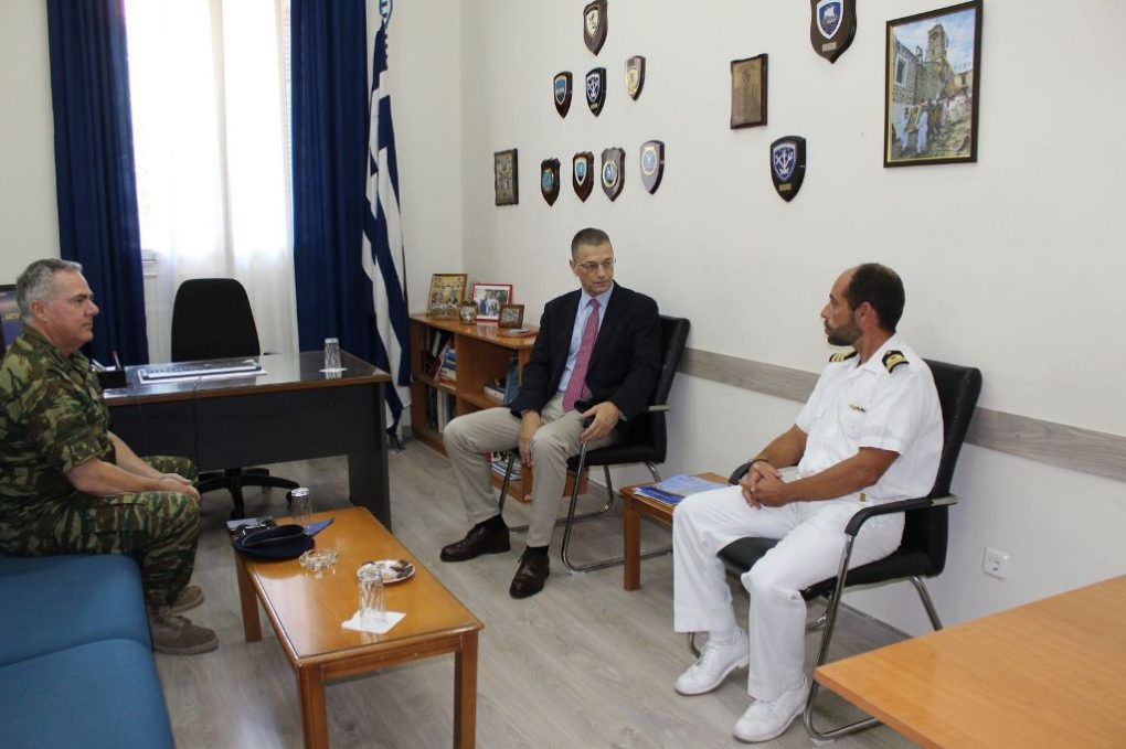 Ο Υφυπουργός Εθνικής Άμυνας Αλκιβιάδης Στεφανής, πραγματοποιεί σήμερα, Τετάρτη 14 Αυγούστου 2019, επίσκεψη στη Λέσβο. Πρώτος σταθμός του Υφυπουργού το Στρατηγείο της 98 Ανώτερης Διοίκησης Ταγμάτων Εθνοφυλακής (ΑΔΤΕ) στη Μυτιλήνη. Στη συνέχεια, επισκέφθηκε την έδρα του 265 Μηχανοκίνητου (Μ/Κ) Τάγματος Εθνοφυλακής (ΤΕ) στο χωριό Μανταμάδος, καθώς και το κλιμάκιο Ναυτικού Σταθμού Λέσβου (ΝΑΣΛΕ) του Πολεμικού Ναυτικού, στη Μυτιλήνη.