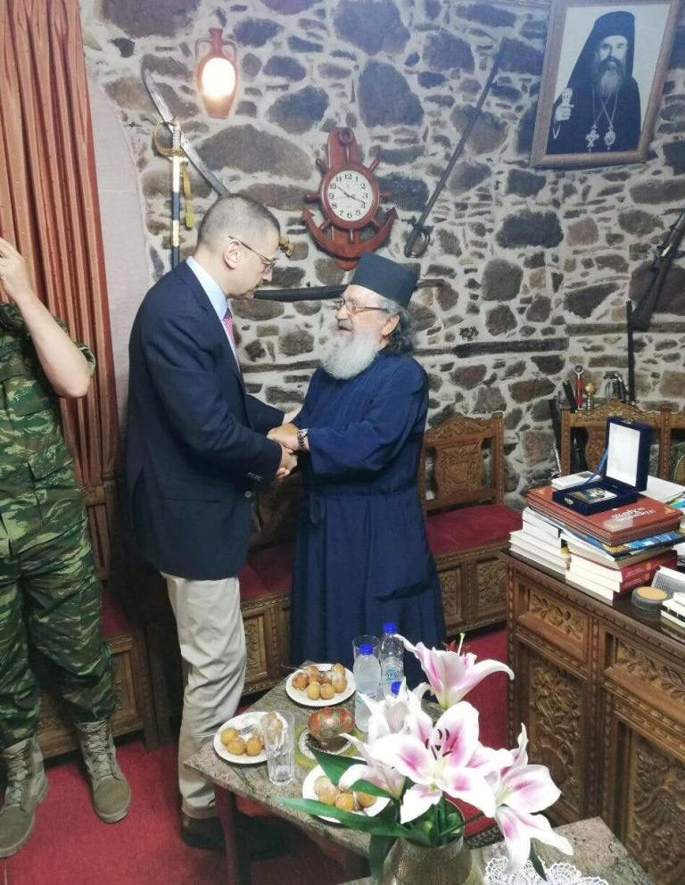 O Υφυπουργός, εκτός από τις επισκέψεις του σε υπηρεσιακό επίπεδο, συναντήθηκε στο πλαίσιο εθιμοτυπικών επισκέψεων, με τη Γενική Γραμματέα Αιγαίου και Νησιωτικής Πολιτικής Χριστιάνα Καλογήρου και με τον Δήμαρχο Λέσβου Σπύρο Γαληνό.