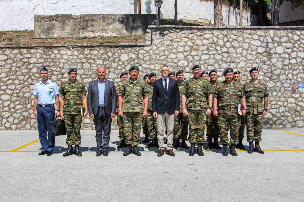 Πρώτος σταθμός του Υφυπουργού Εθνικής Άμυνας, ο οποίος συνοδευόταν από τους Διοικητές της 1ης Στρατιάς Αντιστράτηγο Κωνσταντίνο Φλώρο και του Γ΄ Σώματος Στρατού Αντιστράτηγο Κωνσταντίνο Κούτρα, η έδρα του 15ου Συντάγματος Πεζικού. Ο Υφυπουργός, μετά τη σύντομη ενημέρωσή του, απηύθυνε χαιρετισμό στα στελέχη του Επιτελείου του Συντάγματος. Συνεχάρη και ευχαρίστησε τη Διοίκηση, το Επιτελείο και το σύνολο του προσωπικού των Ενόπλων Δυνάμεων που υπηρετούν στη Φρουρά, για το εξαιρετικό έργο που επιτελούν σε αυτήν την ιδιαίτερη, ευαίσθητη και με πλούσια ιστορία ακριτική περιοχή της πατρίδας μας, καθώς επίσης και για τη συμβολή τους στα τοπικά έργα κοινωνικής ωφέλειας που έχουν γίνει για την ανακούφιση των κατοίκων.