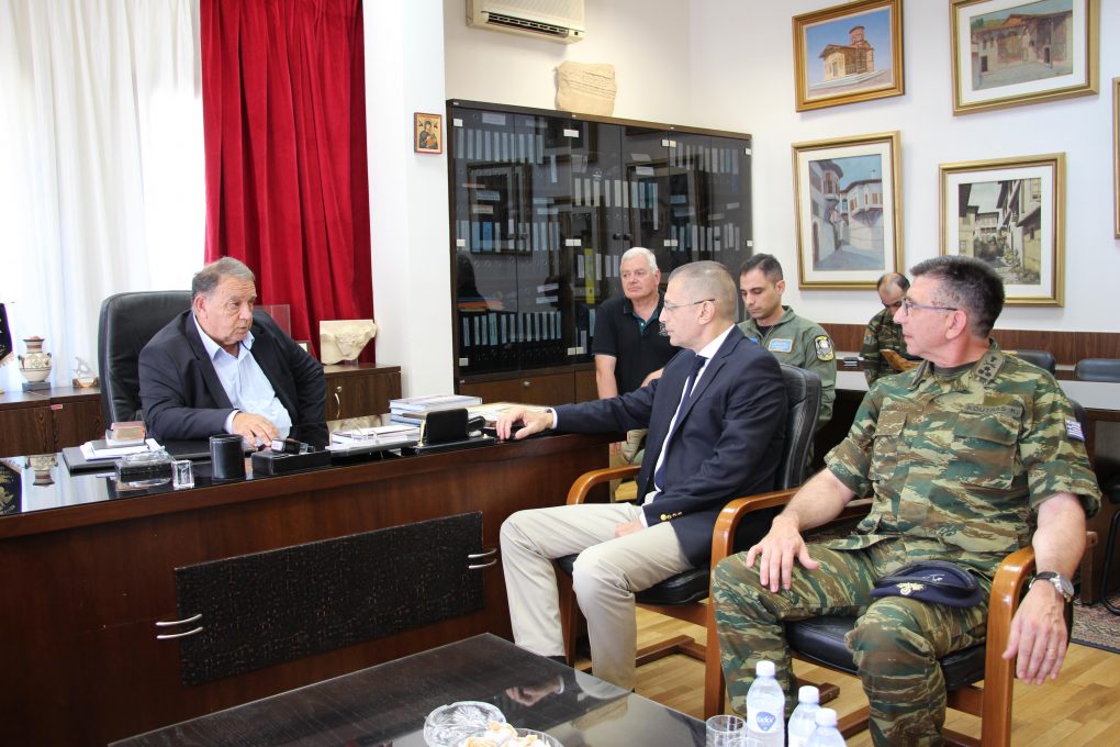 Στη συνέχεια, ο Υφυπουργός Εθνικής Άμυνας μετέβη στο Δημαρχείο, όπου στο πλαίσιο εθιμοτυπικής επίσκεψης, συναντήθηκε με τον Δήμαρχο Καστοριάς, κ. Ανέστη Αγγελή.