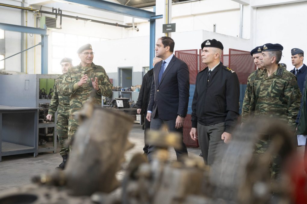 Ο Υφυπουργός Εθνικής Άμυνας κ. Γιάννης Κεφαλογιάννης επισκέφθηκε σήμερα, Πέμπτη 27 Φεβρουαρίου 2025, το 301 Εργοστάσιο Βάσης (301 ΕΒ) και τη Σχολή Τεχνικής Εκπαίδευσης Αξιωματικών Τεχνικού (ΣΤΕΑΤΧ) στους Αγίους Αναργύρους, συνοδευόμενος από τον Αρχηγό ΓΕΣ Αντιστράτηγο Γεώργιο Κωστίδη και τον Διοικητή της Ανώτατης Στρατιωτικής Διοίκησης Υποστήριξης Στρατού (ΑΣΔΥΣ) «ΘΗΣΕΑΣ» Αντιστράτηγο Δημήτριο Βακεντή.