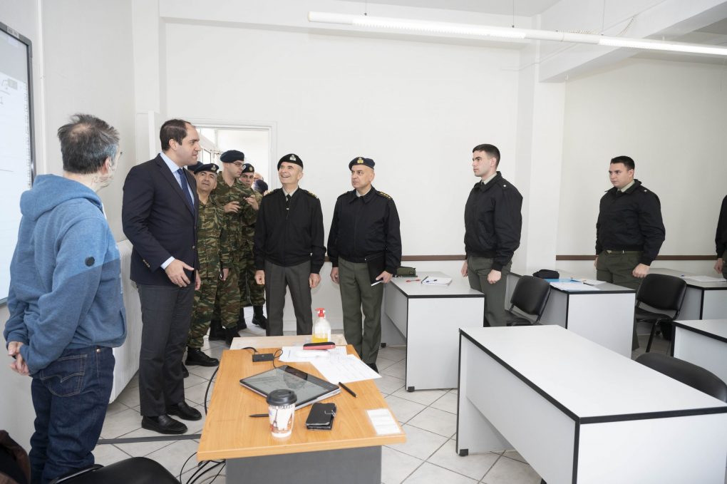 Στη συνέχεια ο κ. Υφυπουργός επισκέφθηκε την ΣΤΕΑΤΧ, όπου συνομίλησε με τους σπουδαστές και τους ευχαρίστησε για την αφοσίωση και το έργο τους μεταφέροντας την απόλυτη στήριξη της Πολιτικής και Στρατιωτικής ηγεσίας των Ενόπλων Δυνάμεων.