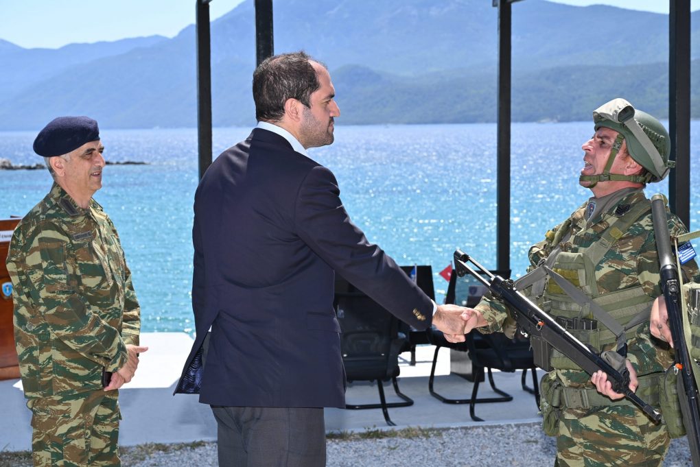 Ο Υφυπουργός Εθνικής Άμυνας κ. Γιάννης Κεφαλογιάννης, βρέθηκε σήμερα, Τετάρτη 15 Μαΐου 2024, σε Μονάδες και Επιτηρητικά Φυλάκια του Στρατού Ξηράς της Περιοχής Ευθύνης της 79 ΑΔΤΕ «ΜΥΚΑΛΗ», στη Σάμο, συνοδευόμενος από τον Διοικητή ΑΣΔΕΝ Αντιστράτηγο Εμμανουήλ Θεοδώρου και τον Διοικητή 79 ΑΔΤΕ Ταξίαρχο Ελευθέριο Οικονόμου.