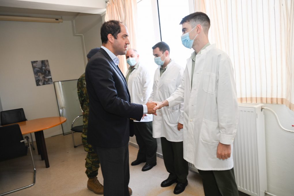 Ακολούθως, μετέβη στο Πανεπιστημιακό Γενικό Νοσοκομείο Αλεξανδρούπολης, το Γενικό Νοσοκομείο Διδυμοτείχου και το Κέντρο Υγείας Σουφλίου, όπου συναντήθηκε με τους Διοικητές των Νοσοκομείων, καθώς και με το προσωπικό που διατίθεται από το Υπουργείο Εθνικής Άμυνας για τις ανάγκες τους. Συγκεκριμένα, με τους τέσσερις Στρατιωτικούς Ιατρούς (Καρδιολόγος, Γαστρεντερολόγος, Πνευμονολόγος, Νευρολόγος) που διατίθενται στο ΠΓΝ Αλεξανδρούπολης, τους πέντε Στρατιωτικούς Ιατρούς (Καρδιολόγος, Παθολόγος, Ορθοπεδικός, Χειρούργος, Ψυχίατρος) που διατίθενται στο ΓΝ Διδυμοτείχου και τους τρεις οδηγούς ΕΚΑΒ, Επαγγελματίες Οπλίτες, που διατίθενται στο Κέντρο Υγείας Σουφλίου.