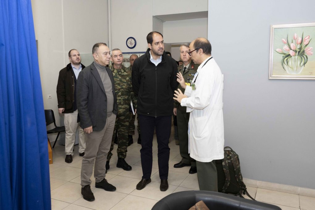 Κατά την επίσκεψή του στο 404 ΓΣΝ, ο κ. Υφυπουργός, συνοδευόμενος από τον Υποδιοικητή ΑΣΔΥΣ Υποστράτηγο Δημήτριο Μπολομύτη, ενημερώθηκε από τον Διοικητή 404 ΓΣΝ Συνταγματάρχη (ΥΙ) Χρήστο Αντωνίου για τη δομή, τη στελέχωση και τη λειτουργία του Νοσοκομείου, ενώ συζητήθηκαν οι δυνατότητες και η προοπτική του.