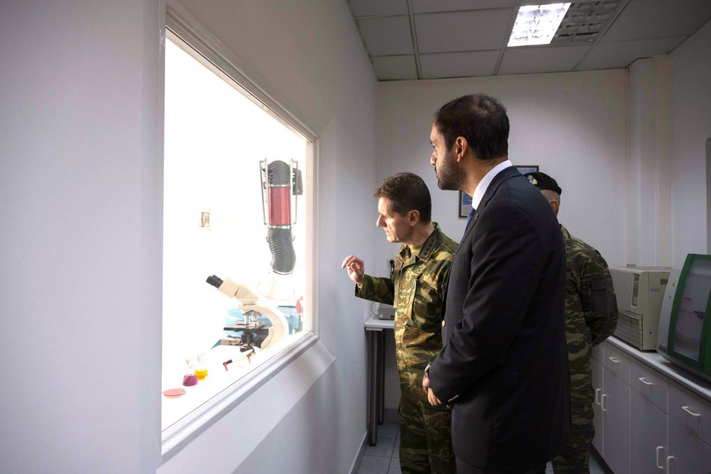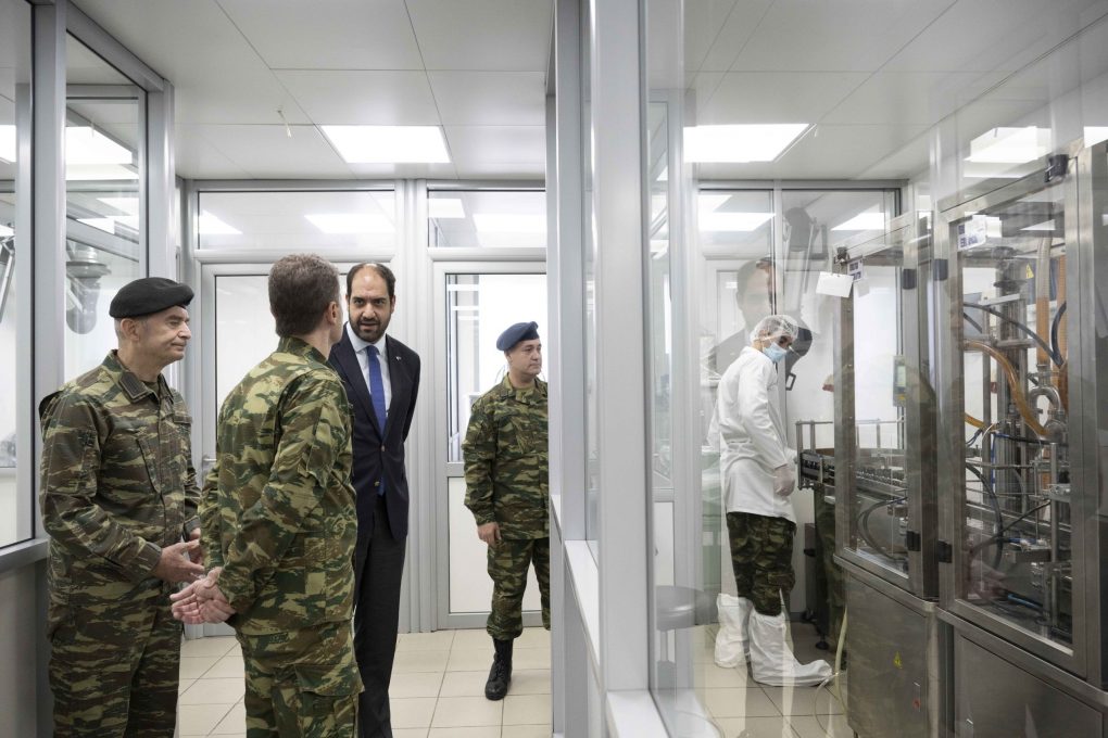 « Επισκέφτηκα σήμερα την 441 Αποθήκη Βάσεως Υγειονομικού Υλικού, το μοναδικό εργαστήριο παραγωγής φαρμάκων των Ενόπλων Δυνάμεων που παραλαμβάνει, εναποθηκεύει, συντηρεί, διαχειρίζεται και χορηγεί, υγειονομικά υλικά για τη συντήρηση των μονάδων των τριών κλάδων. Θέλω να συγχαρώ το προσωπικό, επιστήμονες με εξαιρετικά προσόντα που εργάζονται εντατικά για να καλύψουν τις ανάγκες του στρατεύματος και όσων χρειάζονται το υλικό που παράγεται εδώ.»