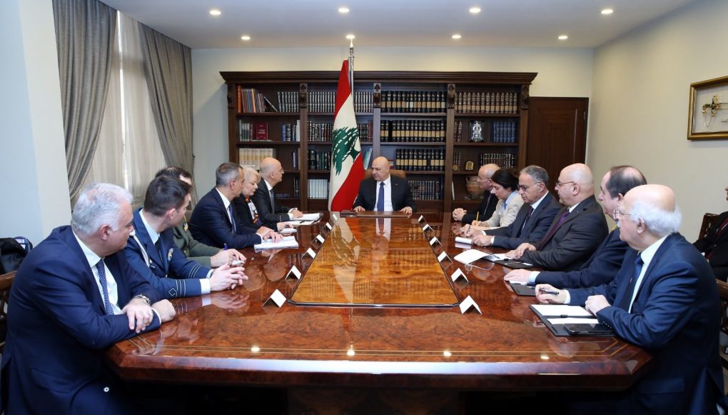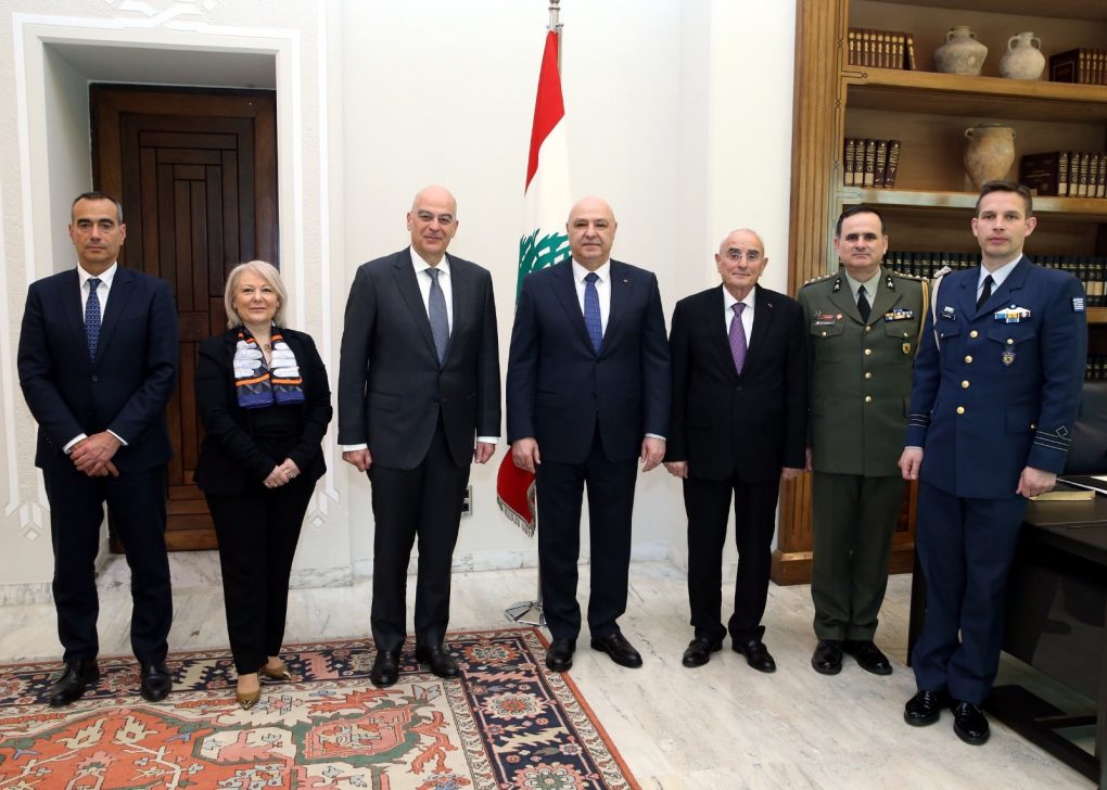 Στο πλαίσιο της επίσκεψης ο κ. Δένδιας έγινε δεκτός από τον Πρόεδρο του Λιβάνου, Στρατηγό Ζοζέφ Αούν (Joseph Aoun) στο Προεδρικό Μέγαρο στη Βηρυτό, παρουσία του Υπουργού Άμυνας του Λιβάνου.