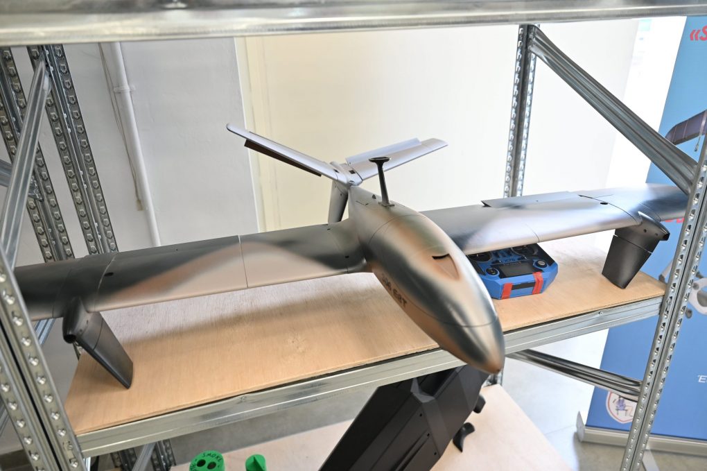 Εδώ έχουμε ένα εργοστάσιο παραγωγής μη επανδρωμένων αεροχημάτων, drones, κατηγορίας Ι και First Person View (FPV), αλλά και μεγαλύτερων drones κατηγορίας Ι, καθώς επίσης εδώ έχουμε αναπτύξει δύο πρωτότυπους φορητούς σταθμούς παραγωγής drones, οι οποίοι θα εμφανιστούν για πρώτη φορά στην παρέλαση της 28ης Οκτωβρίου στη Θεσσαλονίκη. Και είναι κατασκευασμένοι για να ακολουθούν τις μεγάλες μονάδες μας. Δηλαδή, να μπορούν να παράγουν FPV drones επί του πεδίου.
